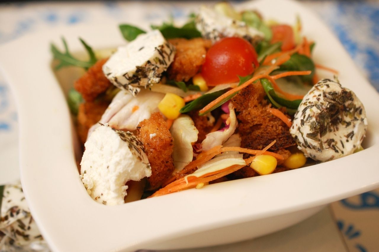 Eu vreau sa va prezint azi o salata de cruditati cu branza de capra, perfecta pentru un pranz usor dar totodata foarte hranitor sau de ce nu, pentru o cina dupa care nu trebuie sa te simti vinovat š