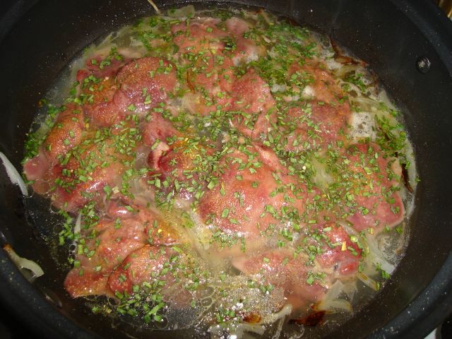 Taiem ceapa pestisori si o calim in ulei. Cand ceapa se sticleste, punem ficatei, turnam peste cana cu apa, condimentam bine (mie imi place sa pun multa ceapa verde). Acperim si ii lasam la prajito-fiert sau ce face ei acolo (oricum, asteptati-va la bulbuci 🙂 Ii intoarcem la un momentdat, ii mai lasam sa se prajeasca si pe cealalta parte si…GATA! Aveti grija, nu ii lasati nesupravegheati, pt ca se fac oricum f repede!