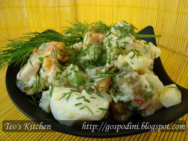 Dintre retetele culinare de vara nu putea lipsi reteta de salata ruseasca, cunoscuta si sub numele de salata Olivier, desi e impropriu spus, intrucat are foarte putin de-a face cu reteta originala a bucatarului Lucien Olivier. Ca si orice reteta foarte populara, salata ruseasca a suferit o serie de modificari de la o perioada la alta, de la un restaurant la altul si bineinteles, de la gospodina la gospodina.