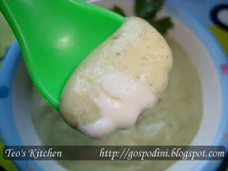 Dupa ce ati oparit spanacul, ati fiert oul (cel putin 10-15 minute) si ati fiert cartofii (in coaja), cand sunt cartofii inca fierbinti ii pisati impreuna cu untul, apoi adaugati galbenusul de ou si spanacul iar la final, lapticul. Nu am dat o cantitate exacta pentru lapte, doar va dati seama ce consistenta trebuie sa aiba, in functie de ceea ce mananca bebe zi de zi. Daca folositi lapte praf, faceti o singura portie, nu se pastreaza bine la frigider.