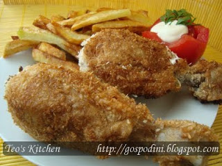 Cea mai potrivita garnitura mi s-au parut cartofii prajiti, insa la fel de bine puteti manca pulpele de pui in crusta de cocos cu cartofi natur sau pur si simplu alaturi de o salata, fara garnitura suplimentara.