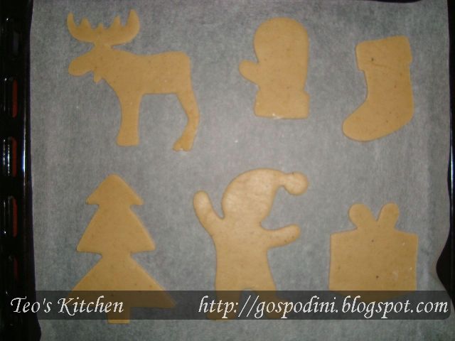 Pe o planseta presarati putina faina, intindeti aluatul in start de aproximativ 1 cm si decupati turta dulce folosind formele speciale. Asezati formele in tava tapetata cu hartie de copt, lasand putina dinstanta intre ele. Turta dulce se coace 12-15 minute, la 180 de grade.