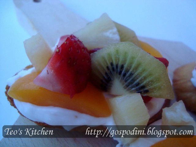 – fructe de tot felul: capsuni, piersici, kiwi, ananas, ce va place si aveti in casa