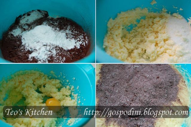Intr-un vas amestecam cacaua, faina, praful de copt si sarea. Separat, spumam untul impreuna cu zaharul, apoi adaugam ouale, pe rand, amestecand bine dupa fiecare. La final adaugam vanilia.