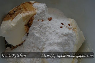 Apoi am adaugat faina cernuta impreuna cu praful de copt si am amestecat cu mixerul pana am avut o compozitie omogena…