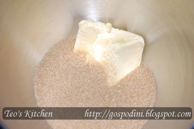 Spumam margarina Rama Maestro si zaharul brun, pana zaharul e aproape topit.