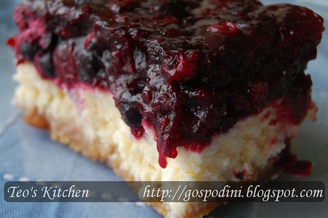 am facut si eu cheese cake-ul simplu, nu acesta cu fructe de padure! si am folosit 1 kg de branza de vaci vrac. si vreau sa va zic ca a iesit delicios, de te lingi pe degete nu altceva! am fost tare mandra de cheese cake-ul meu pentru ca e prima "dulciura" facuta de mine! datorita lui teo 😉