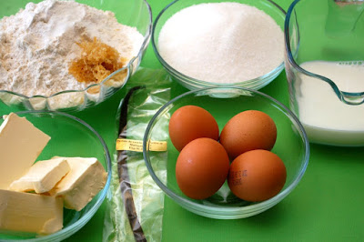 Incingem cuptorul la 180°C si tapetam tava pentru prajitura cu hartie de copt. Spumam intai untul, de unul singur, un minut cu mixerul la viteza mare, apoi punem zaharul si amestecam 5 minute sau pana avem o spuma omogena si zaharul este aproape topit. Adaugam apoi ouale, unul cate unul, amestecand dupa fiecare. Urmeaza ½ din cantitatea de faina (faina trebuie cernuta inainte cu praf de copt si sare), miezul batonului de vanilie si coaja de lamaie. Amestecam 2-3 minute la viteza mare, apoi punem laptele, amestecam din nou si la final punem restul de faina. Compozita trebuie sa fie foarte cremoasa si omogena. O turnam in tava pe care am pregatit-o si o dam la cuptor 35-45 minute sau pana trece testul scobitorii.