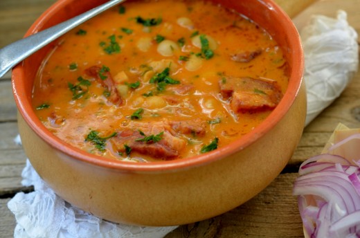 Hmmmm…supa crema de fasole boabe…hmmmmm! Americanii au o vorba cand descriu retete culinare foarte apetisante, care incalzesc nu numai stomacul, dar si sufletul si care, in general, le aduc aminte de mancarea mamei de acasa – le spun “comfort food”. Cam despre asta e vorba si in reteta noastra de azi: o supa minunata, plina de legume, cu afumatura, ca doar asa ii sta bine unei supe de fasole si mai ales cu fasole boabe de anul asta, care a fiert repede, care a fost foarte gustoasa, cu boabele mari si mai ales care, gatita asa cum trebuie, nu cauzeaza probleme intestinale…stiti cum zic? 🙂
