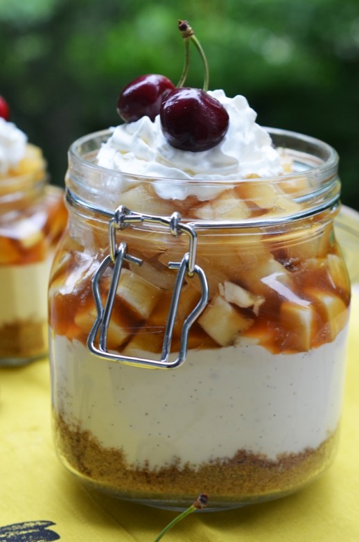 Reteta de Banana Split a ajuns pe blog numai si numai din cauza voastra š De ce? Pentru ca v-a placut atat de mult Reteta de Cheesecake la Borcan incat m-am gandit ca este o idee buna sa va arat si alte deserturi pe care le puteti pregati la borcan, fiind foarte usor de transportat la gratar, de dus cadou cand sunteti invitati la cina, de pus la pachet cand mergeti in excursie sau road trip š In plus, sunt deserturi pe care le puteti pregati cu o zi inainte, chiar cu 2, sa le puneti capacul si sa le tineti la frigider pana e momentul sa le devorati.