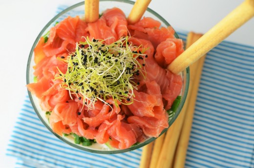 Da, recunosc, mi-am facut stoc, mi-e plin frigiderul de somon afumat si abia astept sa il folosesc in tot felul de combinatii. Lui Luca ii place foarte mult, spre norocul meu, tot asa, alaturi de un “out fiert moale”cum zice el 🙂 Azi insa, folosim somonul afumat la salata de oua, foarte gustoasa si foarte aspectuoasa, de altfel. Daca aveti un astfel de vas pentru servit (poate fi si un bol transparent) in care sa se vada frumos straturile, salata poate fi o aparitie spectaculoasa la orice masa in familie sau petrecere, fiind un aperitiv delicios si sanatos.