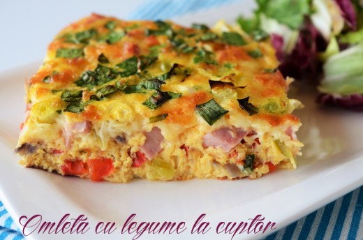 Azi va propun reteta de Omleta la cuptor, o reteta economica, cu ingrediente la indemana oricui si pe care le gasim la magazinul ABC din colt. Omleta la cuptor este perfecta pentru micul dejun din weekend, pentru brunch-ul de duminica (adica acel mic dejun tarziu, pe care il servim intre ora de mic dejun – Breakfast si pranz – Lunch) si mai ales pentru momentele in care trebuie sa hraniti mai multi omuleti la micul dejun, fie ca vorbim de musafiri sau de o familie numeroasa. Omleta la cuptor este delicioasa proaspat scoasa din cuptor dar e la fel de buna si rece, asa ca puteti sa o impachetati la birou a doua zi sau chiar feliata foarte subtire in pachetelul de la scoala.