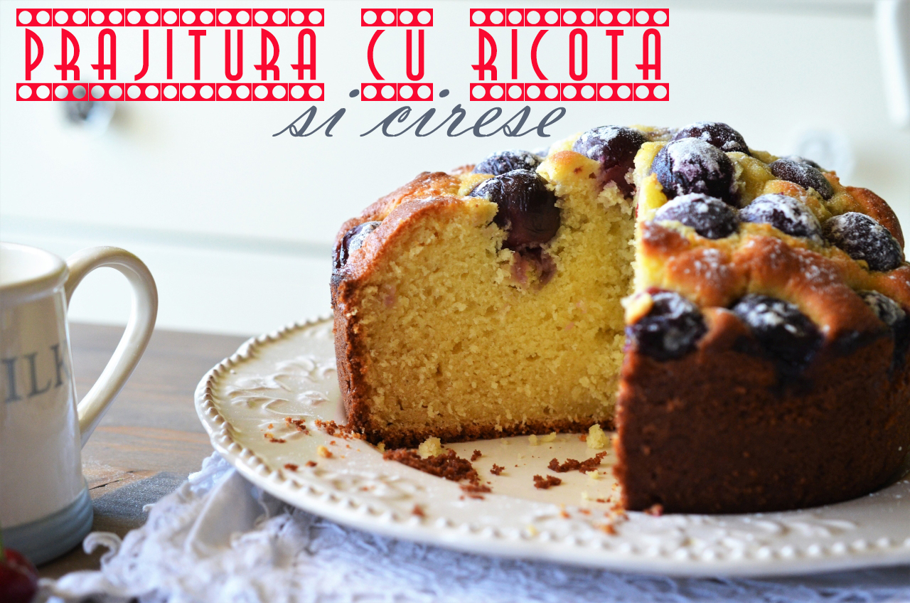 Sigur ca vara este despre inghetata si deserturi racoroase! Dar vara este si despre fructe delicioase. Din cand in cand, oricat ar fi de cald afara, simt nevoia de o prajitura coapte, proaspat scoasa din cuptor. O prajitura aromata si pufloasa, cu fructe. O prajitura care merge perfect alaturi de un glob de inghetata rece. O prajitura exact asa cum este Prajitura cu ricotta si cirese!