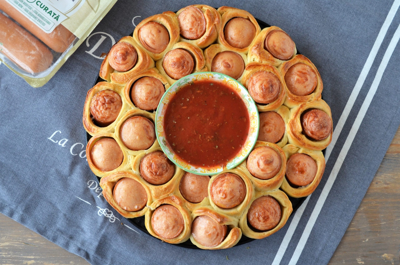 Pentru modul de preparare al delicioasei retete de Coronita aperitiv cu Crenvursti Polonezi, apasati PLAY in fereastra de mai jos si urmariti RETETA VIDEO ❤