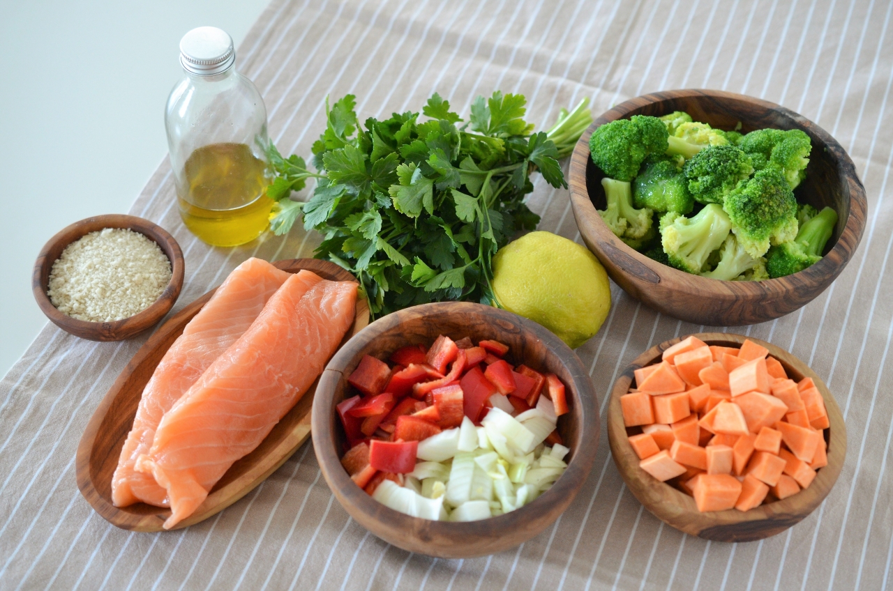 Alaturi de somon vom pune in farfurie legume colorate, care vin si ele la pachet cu o multime de beneficii. De exemplu, cartoful dulce va aduce senzația de satietate, fiind bogat in fibre, in timp ce broccoli vine cu un aport de vitamina C. Sanatate curata in farfurie!